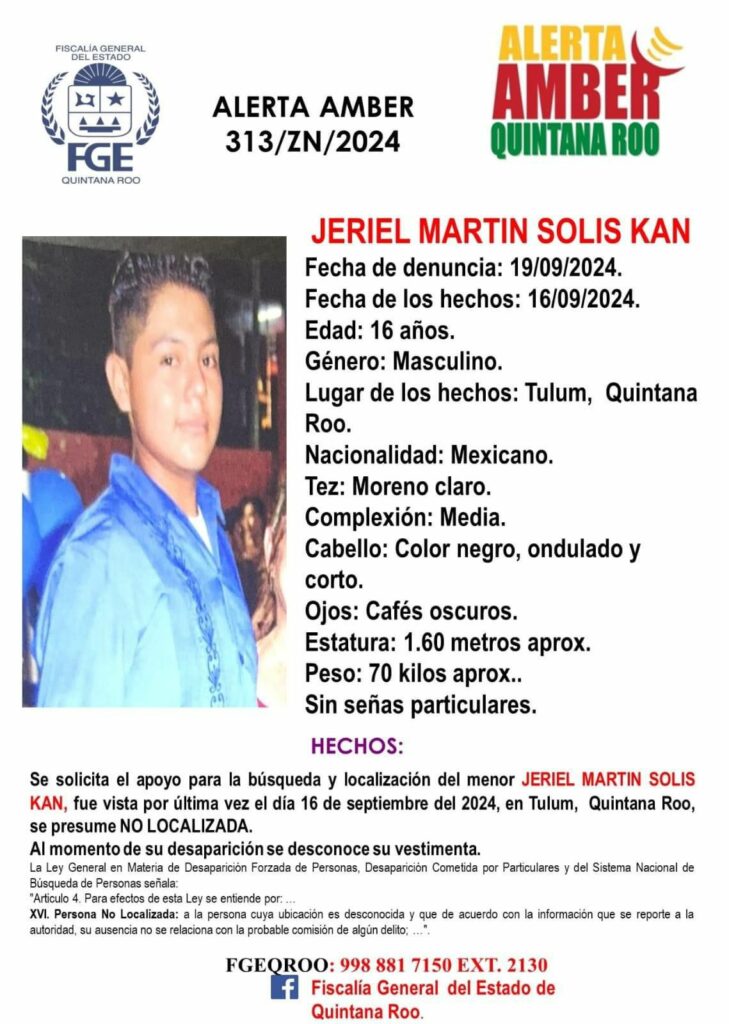 Ficha de Desaparición de Jerel Martin Solís Kan