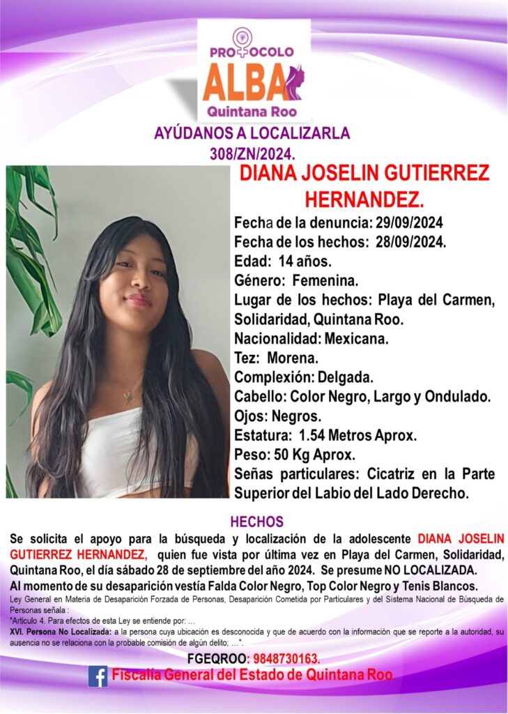 Ficha de Desaparición de Diana Joselin Gutiérrez Hernández
