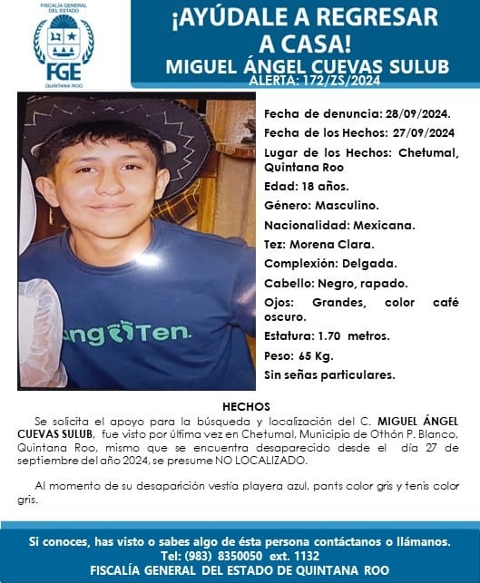 Ficha de Desaparición de Miguel Ángel Cuebas Sulub