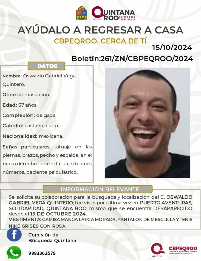 Ficha de desaparición de Oswaldo Gabriel Vega Quintero