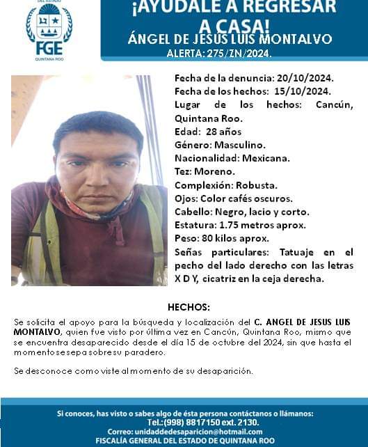Ficha de desaparición de Ángel de Jesús Luis Montalvo