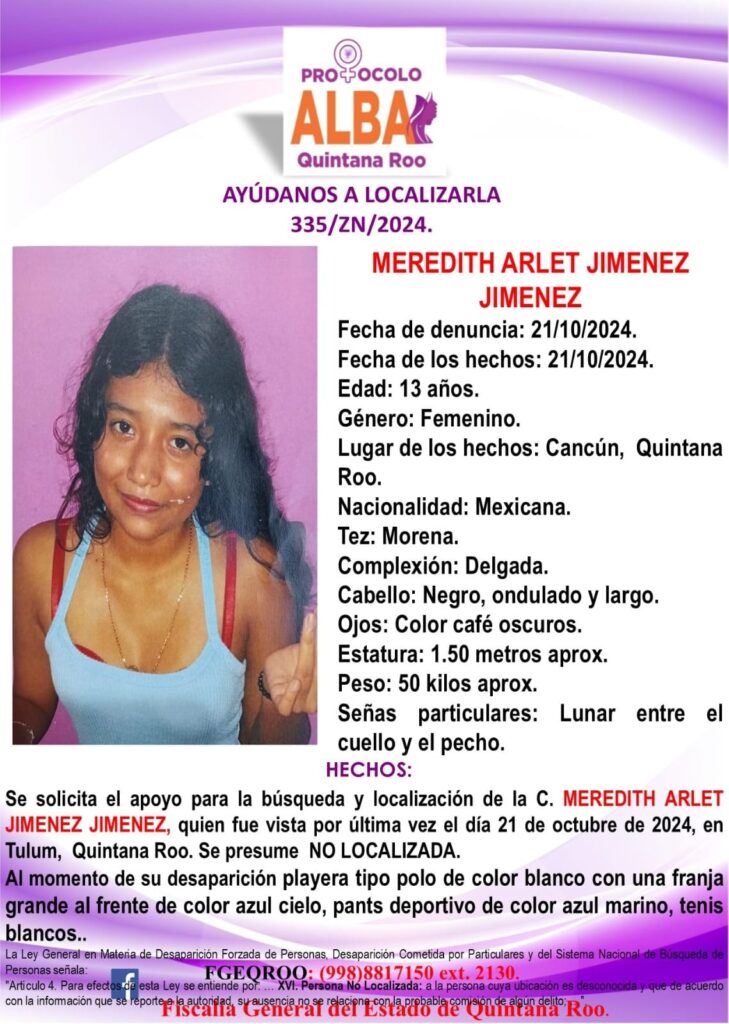 Ficha de desaparición de Meredith Arlet Jiménez Jiménez