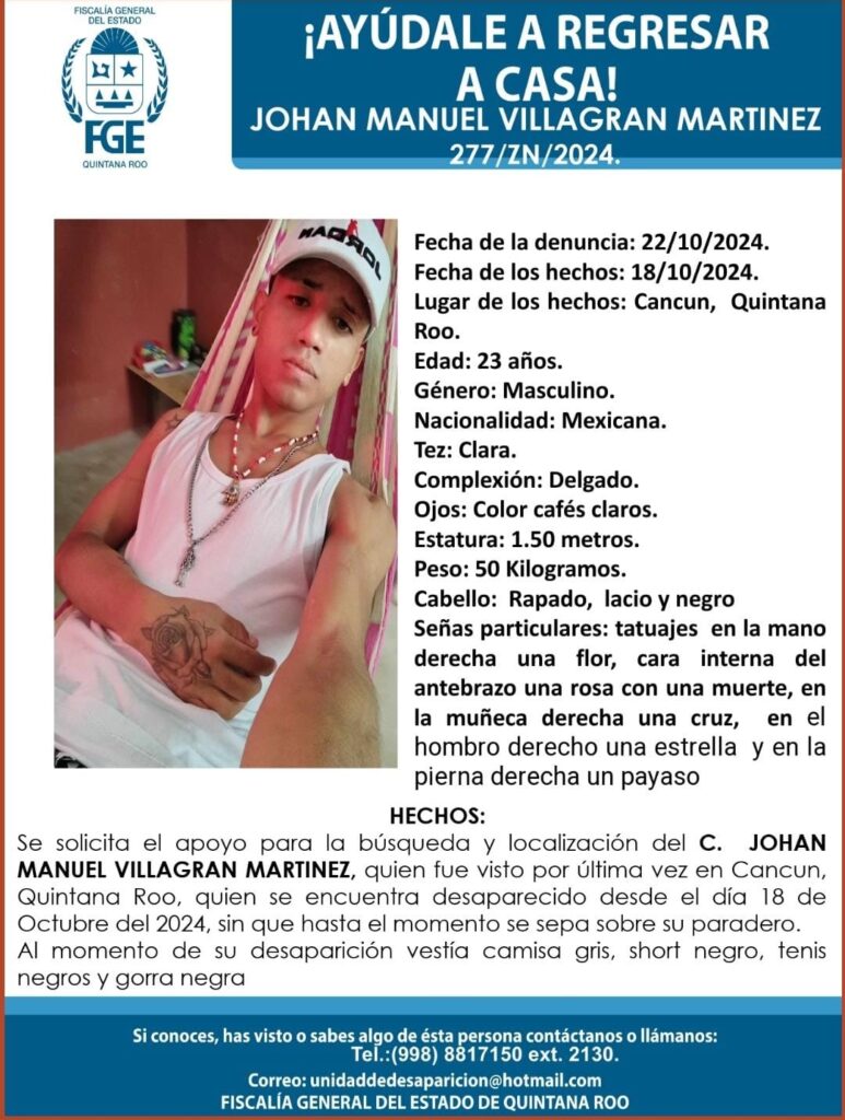 Ficha de desaparición de Johan Manuel Villagrán Martínez