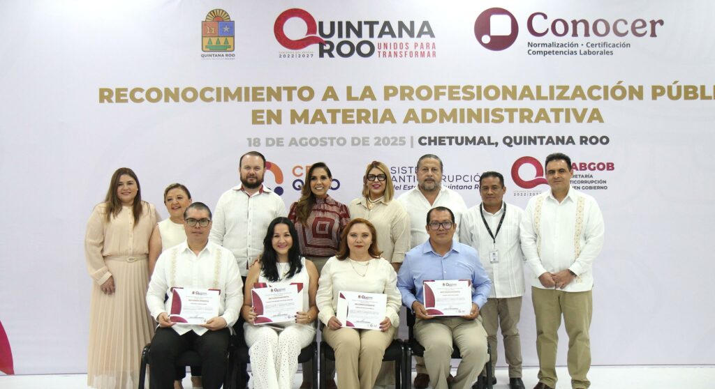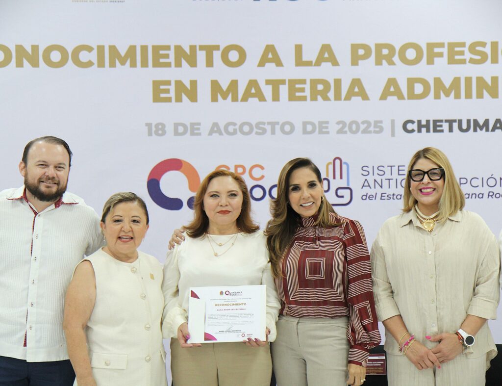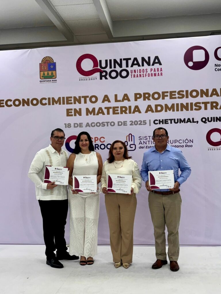 Agosto 18 2025.- En días pasados, la titular del Órgano Interno de Control de la CDHEQROO, la Mtra. Karla Noemí Cetz Estrella, asistió a un evento en el cual ella y su equipo de trabajo recibieron el “Reconocimiento a la Profesionalización Pública en Materia Administrativa”.